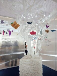 Akar sebagai prinsip dasar, batang sebagai simbol keteguhan diri, dan dahan yang mewakili fase-fase kehidupan yang berkembang seiring waktu. Pada pusat pohon, hadir struktur kubus yang melambangkan pentingnya manajemen hidup dan keuangan. Pengunjung diajak untuk berinteraksi dengan instalasi pohon ini melalui aktivitas origami, yang turut mengembangkan karya ini sepanjang periode pameran.